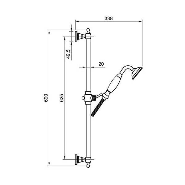 Diese Brausestange aus massivem Messing und der Handbrause mit Keramikgriff sind aus massivem Messing
