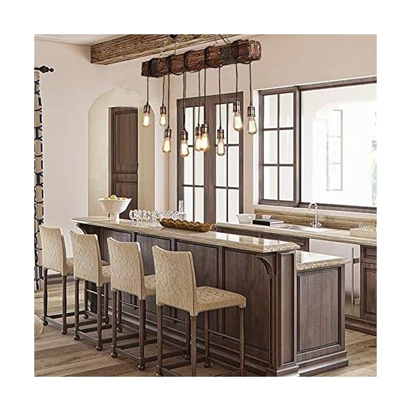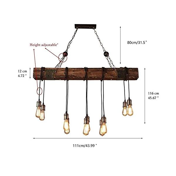 ZSAIMD Vintage Industrie Edison 10 Lichter Semi Flush Deckenleuchte Jahrgang Schmiedeeisen Große Industriependelleuchte Distressed Holz Kronleuchter for Esstisch Küche, Bar, Island, Billiard
